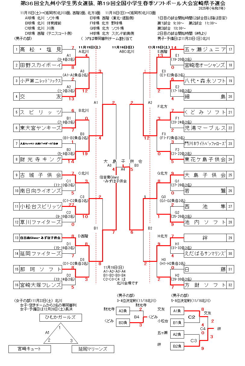 ★第36 回 全九州小学生選抜、第19回全国小学生春季 ソフトボール大会 県予選(男子の部) (2025年11月15、16日、北川・西階・北方運動公園)