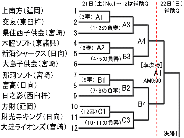 は、10月12日延岡市社会教育センターにて公開代理抽選会により、下記のように組み合わせが決定しました。