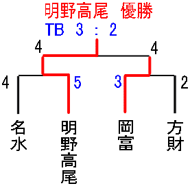 | 明野高尾 | 4 | 1 | 0 | 4 | × | 9 |