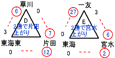 | 草川 | 2 | 3 | 1 | × | 6 |