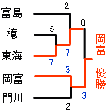 | 岡富中 | 0 | 1 | 2 | 0 | 0 | 3 |