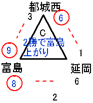 | 富島中 | 1 | 0 | 0 | 1 | 0 | 2 |