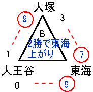 | 東海中 | 0 | 0 | 0 | 0 | 0 | 時間切れ | 0 |