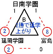 | 延岡学園 | 1 | 1 | 6 | 0 | 0 | - | - | 8 |