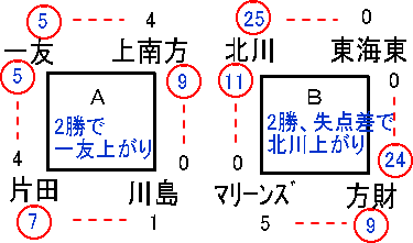 | 北川 | 3 | 3 | 5 | 0 | × | 11 |