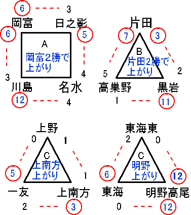 | 明野高尾 | 6 | 2 | 4 | 0 | ×- | 12 |