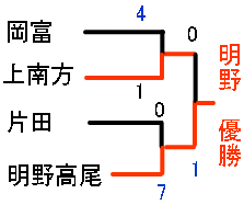 決勝トーナメントに残ったのは明野、片田、上南方、岡富の4チーム。