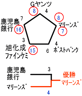 鹿児島銀行とマリーンズの2チームが決勝戦へ。