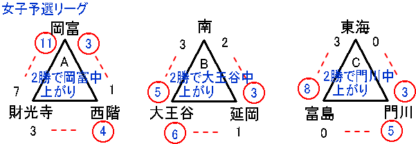| 岡富中 | 0 | 0 | 0 | 0 | 0 | 4 | × | 4 |