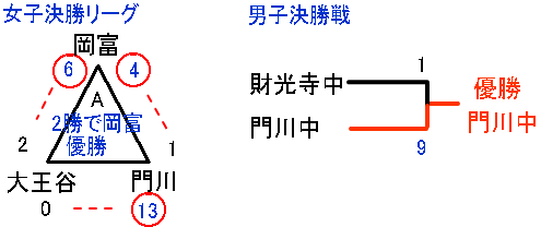 女子決勝リーグに上がったのは大王谷中、門川中、岡富中の3チーム。