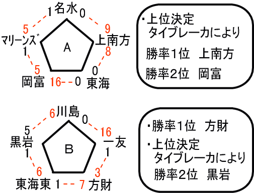 予選は5角形のリンクリーグの2パートを採用、上位2チームにて決勝戦、
