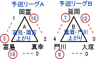 | 富島中 | 13 | 5 | × | - | - | - | - | 18 |