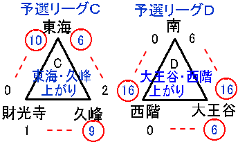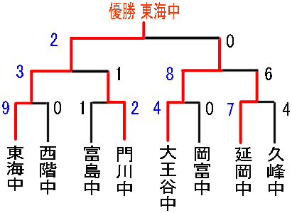 | 東海中 | 0 | 1 | 0 | 0 | 2 | 6 | - | 9 |