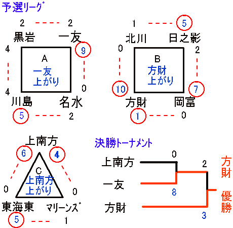 | 一友 | 3 | 2 | 3 | 1 | - | 9 |