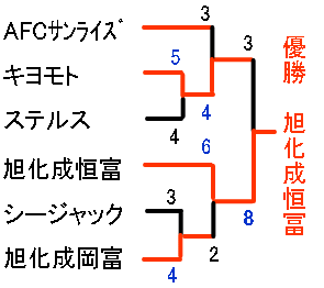 | 旭化成恒富 | 3 | 0 | 2 | 0 | 1 | 0 | × | 6 |