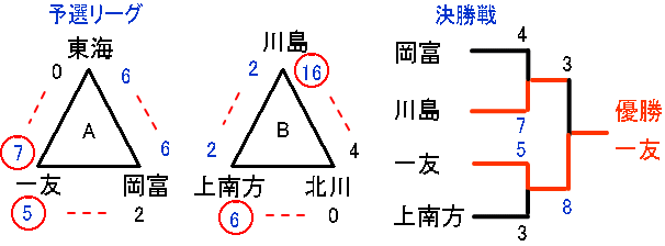 優勝は一友、準優勝は川島ロッキーズ。三位は上南方となった。