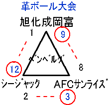 革ボール試合はシージャック、旭化成岡富、サンライズの3チームがリンクリーグ1勝1敗の三つ巴の