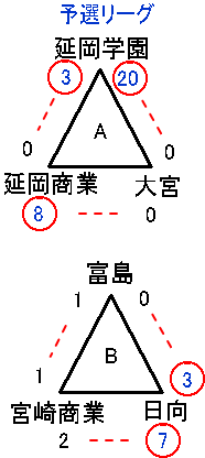 | 延岡学園 | 17 | 3 | × | - | - | 20 |