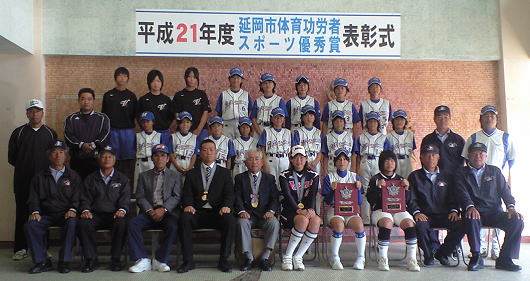 ソフトボール協会からは松本和彦氏、松岡真央選手、山口清楓選手、延岡マリーンズ、延岡中学校ソフト