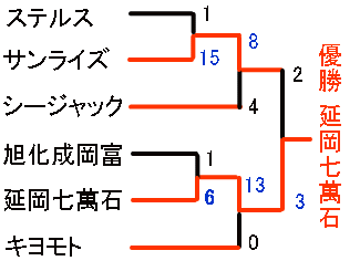 | 延岡七萬石 | 5 | 2 | 6 | 0 | × | - | 13 |