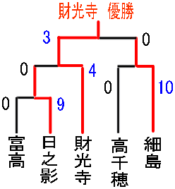| 財光寺 | 1 | 3 | 0 | 0 | × | - | - | 4 |