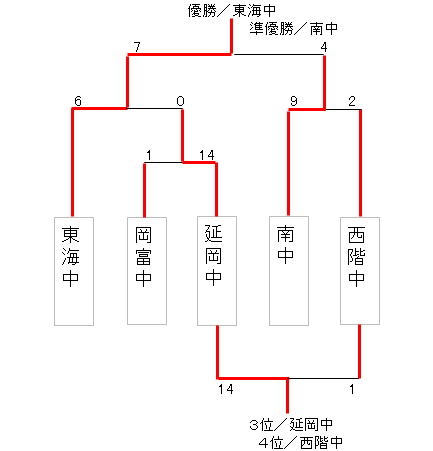 東海中が優勝、南中が2位、延岡中が3位、西階中が4位、岡富中が5位となりました。