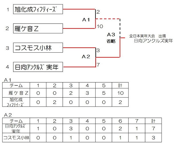 標記大会、旭化成フィフティーズ、コスモス小林、日向アンクルズ実年、雁ケ音Zの