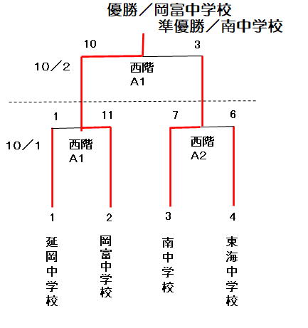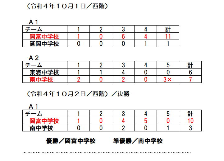 岡富中と南中との決勝戦となりましたが、打撃力で岡富中が押し切りました。