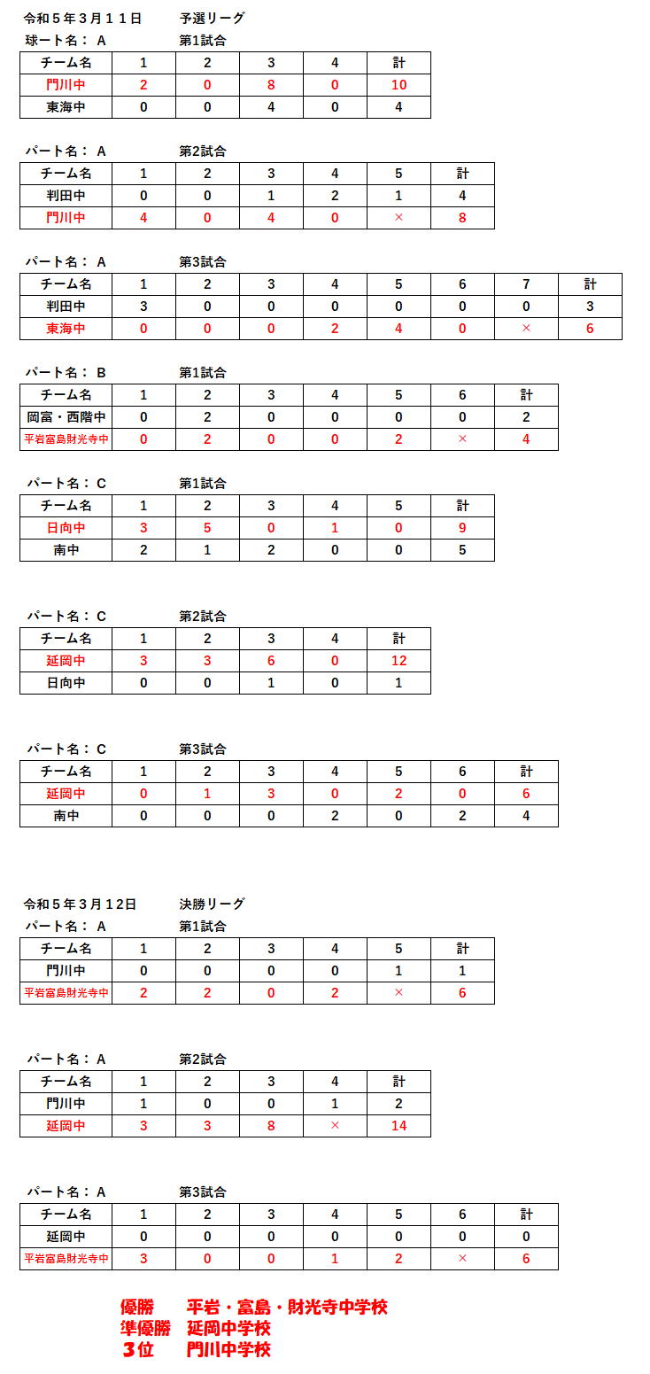 中学生2年生以下の新チームで、冬場の練習されてきて晴れての大会、声援喚起の声