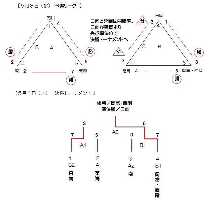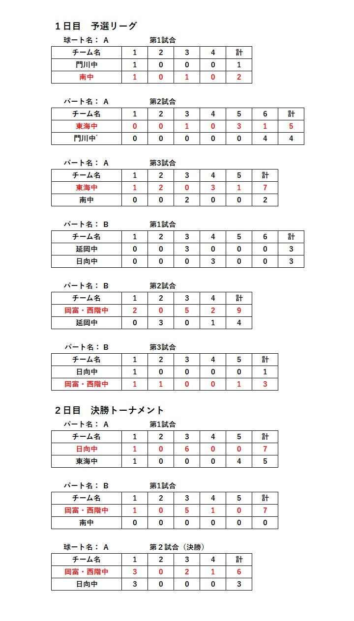 ★第62回県北少年少女スポーツ大会 ソフトボール競技 (2023年5月3、4日、北方運動公園) 延岡市スポーツ協会主催の県北中学生女子ソフトボール競技を 6チーム参加で実施できました。 元気あふれる中学生の声が北川運動公園に響きました。 結果は岡富・西階中合同チームが優勝、日向中が準優勝。 チームの皆さん、次の中体連夏季大会目指して、練習に励んでください。