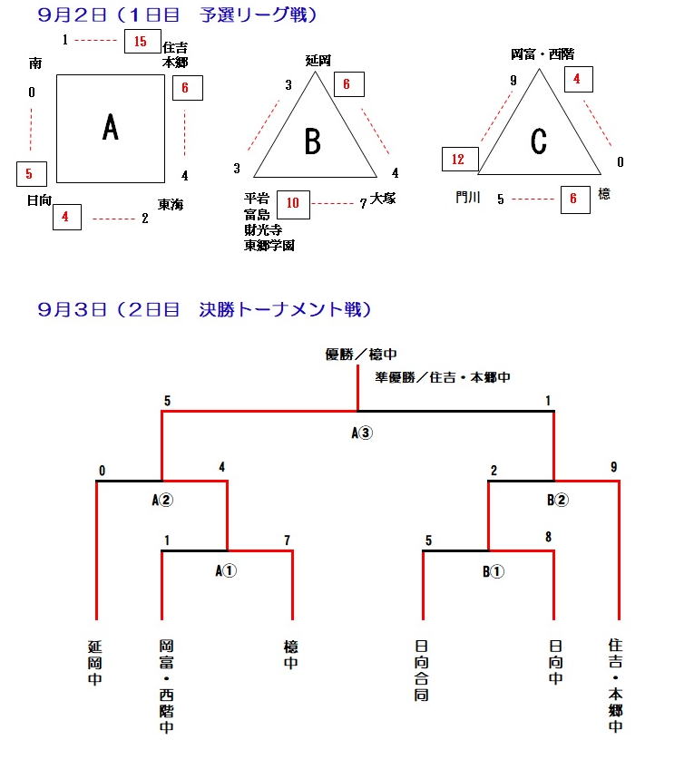檍中学校が優勝。住吉・本郷中学校が準優勝。