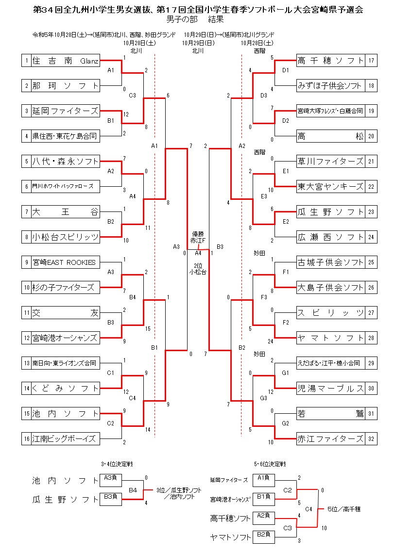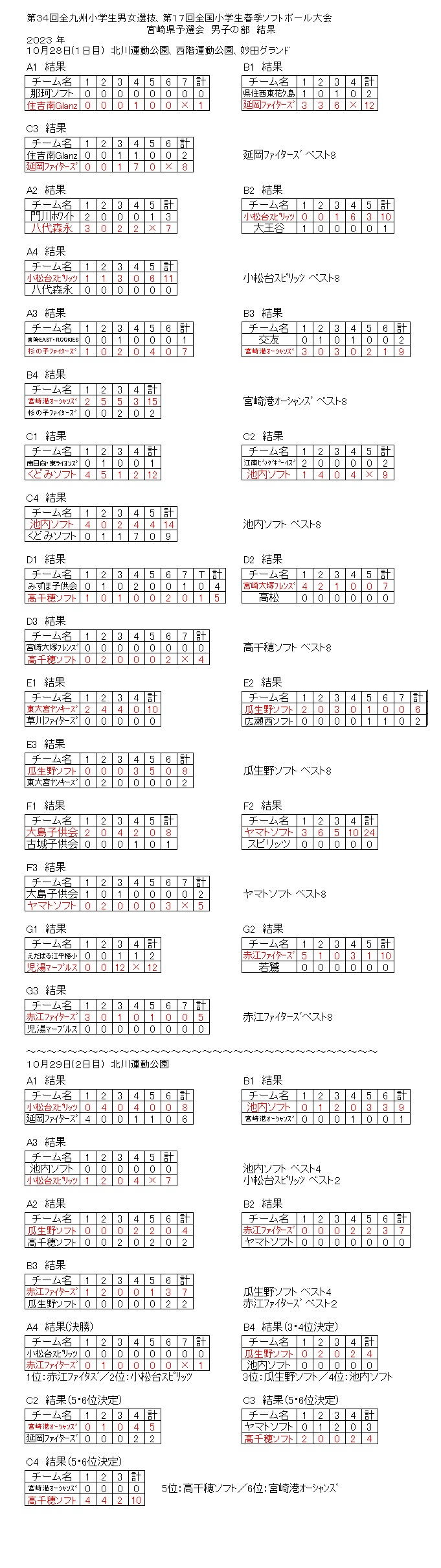 ★第34回全九州小学生男女選抜 第17回全国小学生春季ソフトボール大会 宮崎県予選会 (10月28、29日、北川運動公園、西階運動公園、妙田)
