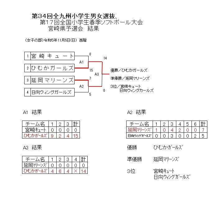 ★第34回全九州小学生男女選抜 第17回全国小学生春季ソフトボール大会 宮崎県予選会 女子の部 (11月5日、西階運動公園)