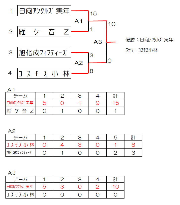 優勝は日向アンクルズ実年、準優勝はコスモス小林
