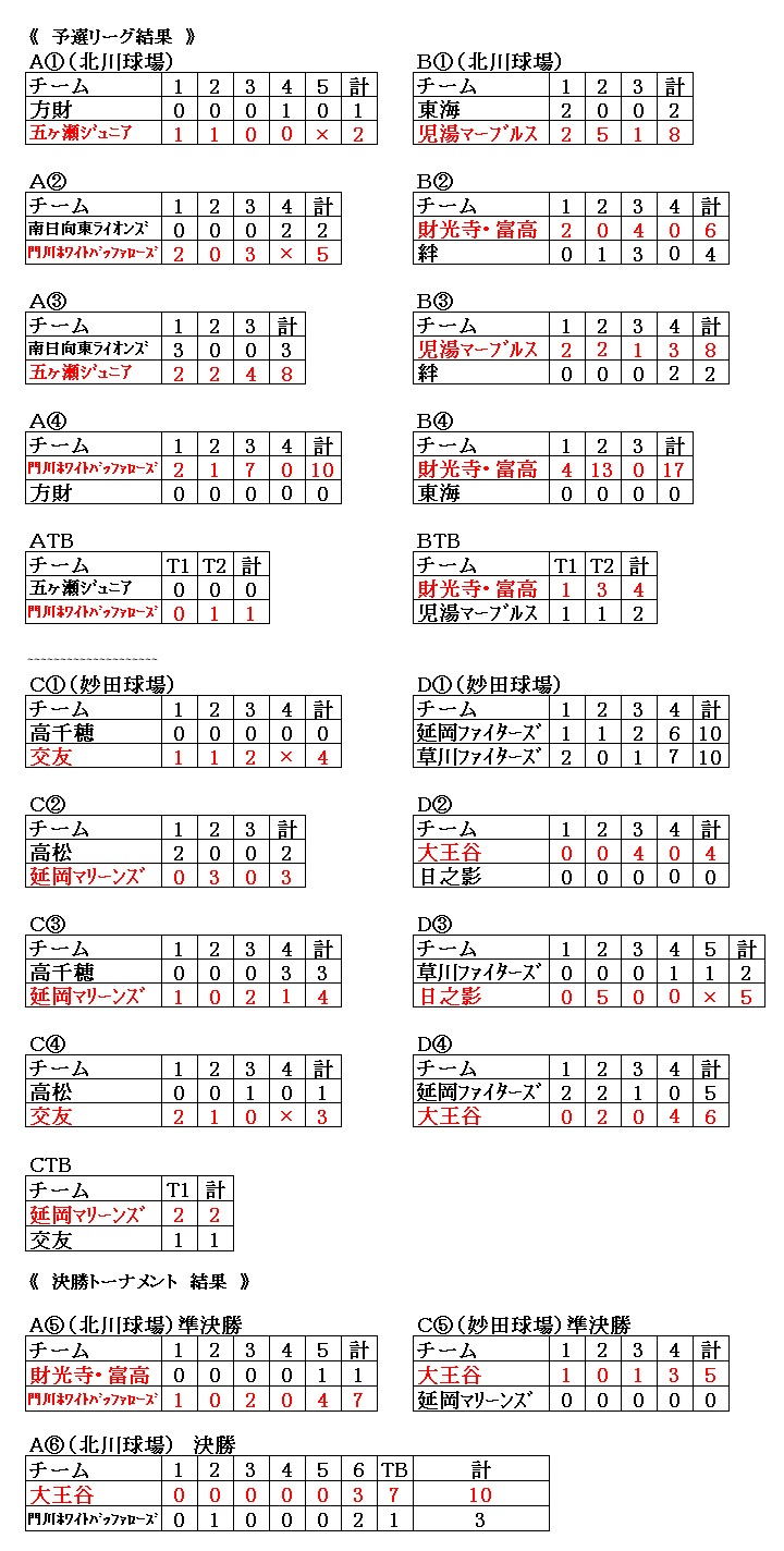 9月23日、北川運動公園と妙田グランドにて、大会を実施しました。 優勝は大王谷チーム、準優勝は門川ホワイトバッファローズチームとなりました。 あけぼの運転代行社のご協力に感謝致します。