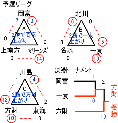 | 川島゙ | 2 | 1 | 1 | 0 | × | 4 |