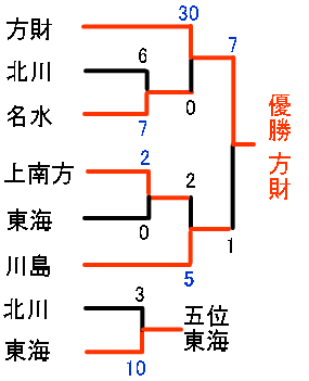 | 東海 | 8 | 1 | 0 | 1 | × | 10 |