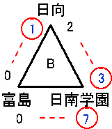 | 日向 | 0 | 2 | 0 | 0 | 0 | 2 |