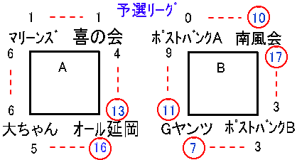 「Gヤンツ」「ポストバンクA、B」「南風会」の予選パートと「マリーンズ」「オール延岡」「喜の会」「大ちゃん」