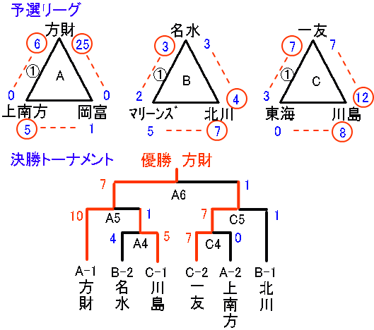 | 北川 | 0 | 6 | 1 | 0 | × | - | 7 |