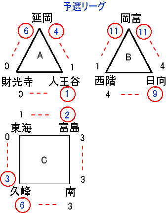 | 大王谷学園 | 0 | 0 | 0 | 0 | 0 | 1 | × | 1 |