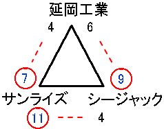 | サンライズ | 0 | 6 | 0 | 1 | 0 | 0 | × | 7 |