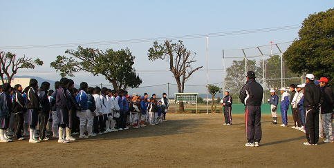 延岡地区の少年部の子供たち、中学校ソフトボール部員、監督・コーチ陣が集合。
