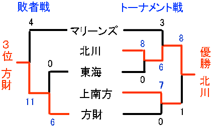 | 北川 | 0 | 0 | 3 | 3 | 0 | × | 6 |