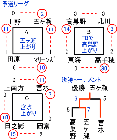 | 五ヶ瀬 | 3 | 8 | 0 | 0 | × | 11 |