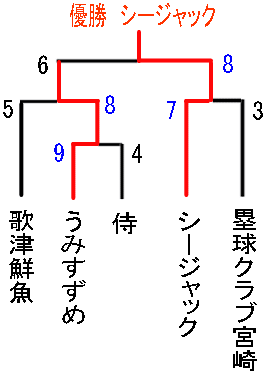 | 塁球クラブ | 0 | 0 | 0 | 0 | 3 | 0 | 0 | 3 |