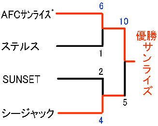| サンライズ | 4 | 0 | 0 | 0 | 2 | 0 | × | 6 |