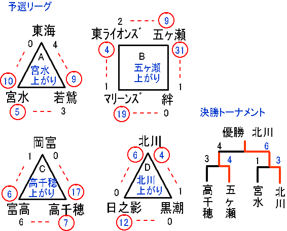 決勝戦は北川と五ヶ瀬ジュニアとなったが、優勝旗を北川チームが手中に納めた。今期も中盤に