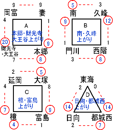 | 本郷 | 1 | 6 | 1 | 1 | × | 9 |