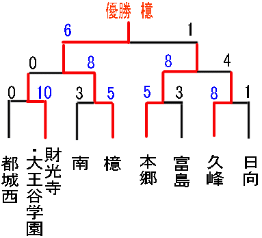 | 本郷 | 3 | 3 | 0 | 2 | 0 | 0 | × | 8 |